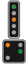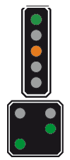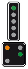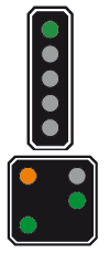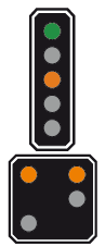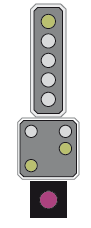 qui informe le mécanicien de la vitesse à respecter au signal principal suivant Le nombre d'ampoules peut varier.